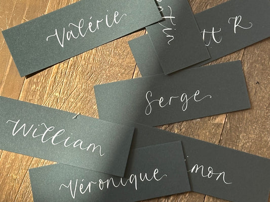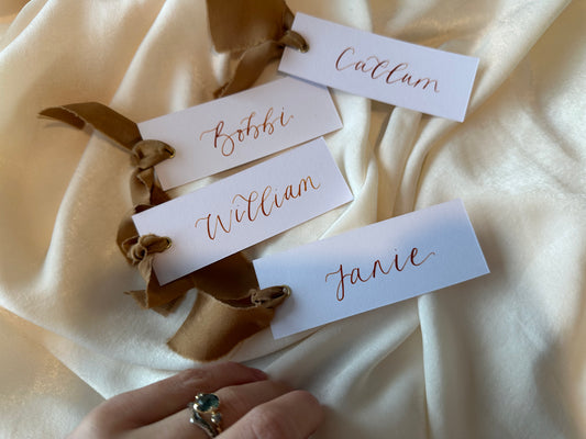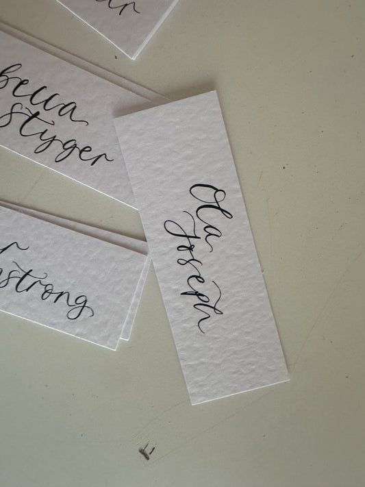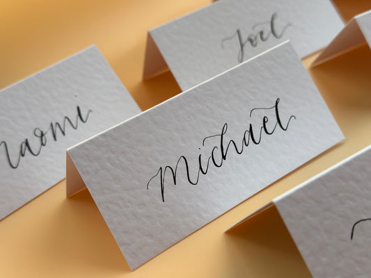 HAMMERED Calligraphy Place Name Card | Calligraphy Wedding Place Name Card | Flat Place Card