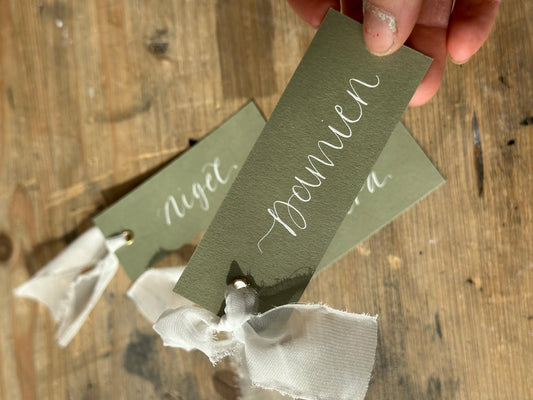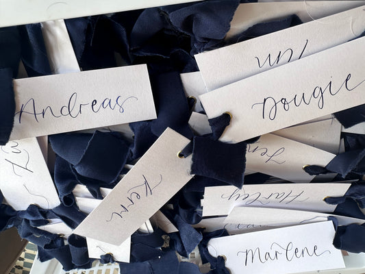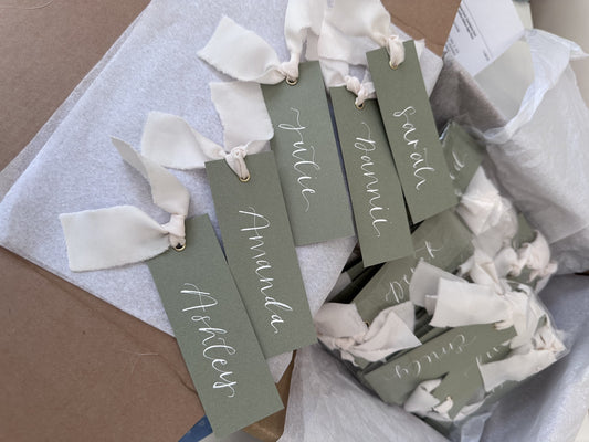 Pack of 5 Personalised Tassel Calligraphy Place Cards | Christmas & New Year