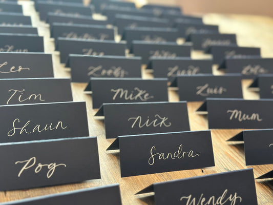 HAMMERED Calligraphy Tented Place Name Card | Calligraphy Wedding Place Name Card | Folded Place Card