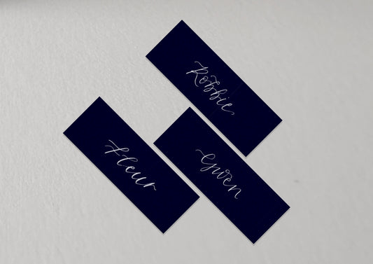NAVY Calligraphy Place Name Card | Calligraphy Wedding Place Name Card | Flat Place Card
