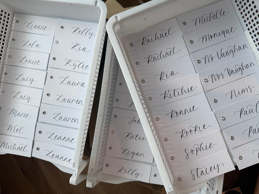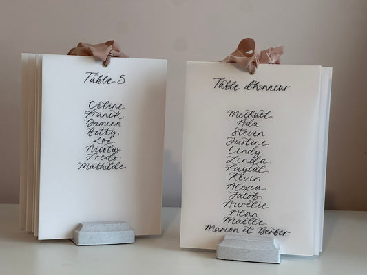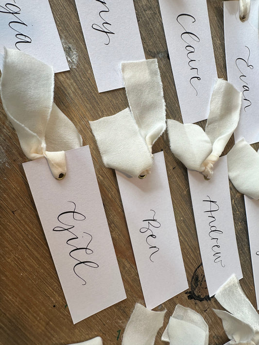 HANDMADE PAPER Ribbon Calligraphy Wedding A5 Table Plan Card | White Card Hand Written Calligraphy Table Plan Card | Mirror Table Plan Cards | DIY Table Plan Card