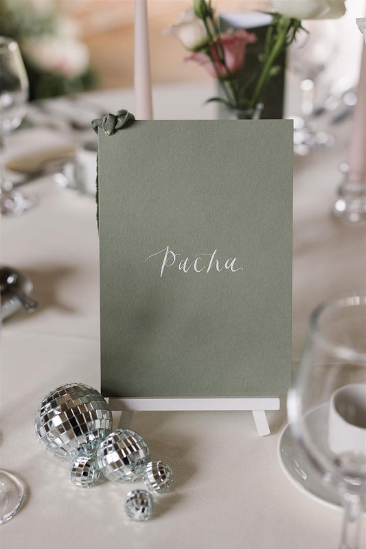 EUCALYPTUS Green Calligraphy Place Name Card | Calligraphy Wedding Place Name Card | Flat Place Card