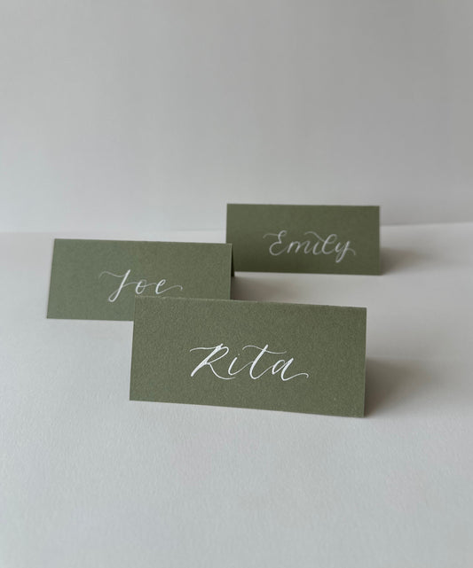 FOREST GREEN Calligraphy Place Name Card | Calligraphy Wedding Place Name Card | Flat Place Card