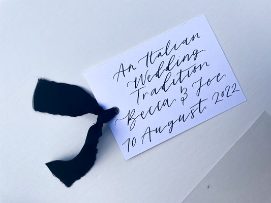 Ribbon Calligraphy Décor Note Card | A6 Calligraphy Wedding Personalised Sign Card | Custom Calligraphy Thank You Note Card | Gold or Silver Info Note