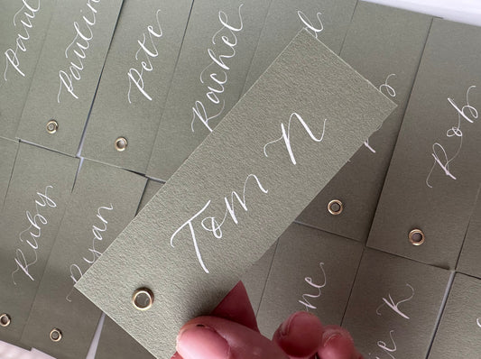 EUCALYPTUS Square *ish Calligraphy Place Name Card | Calligraphy Wedding Place Name Card