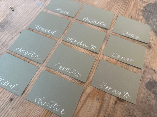 Pack of 5 Personalised Calligraphy Place Cards | Christmas & New Year Table Name Cards