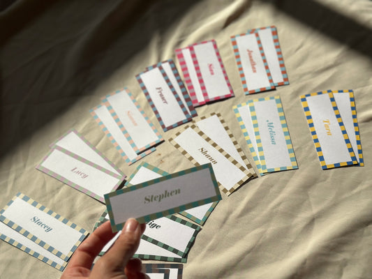 Colourful Contrast Stripe Place Cards | Fun Striped Rainbow Maximalist Wedding Printed Guest Names Place Name Card | Flat Place Card