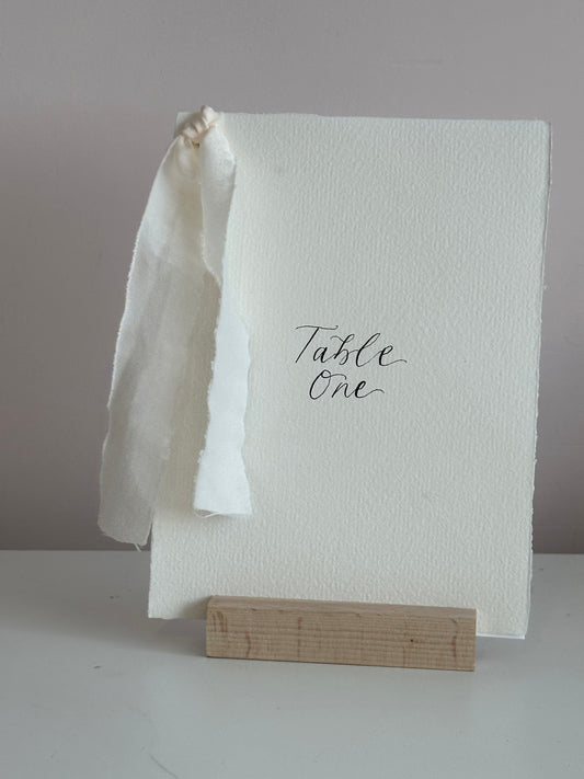 HANDMADE PAPER Ribbon Calligraphy Table Number / Table Name Card | A4 A5 A6 Calligraphy Wedding Table Number / Table Name Card with ribbon
