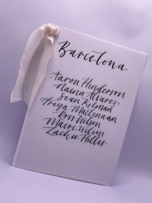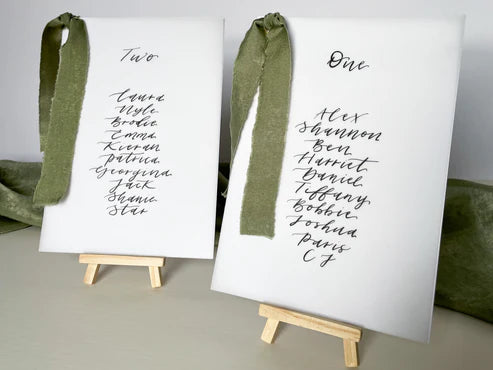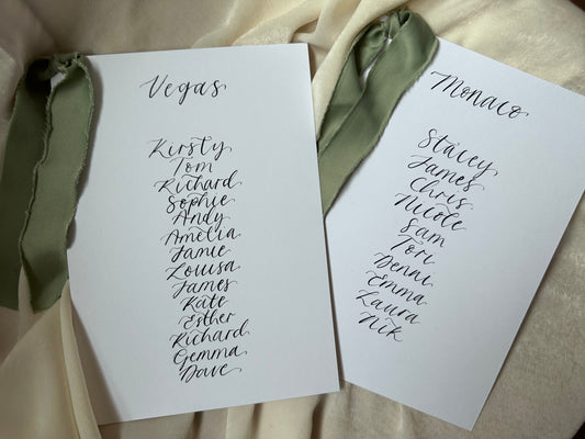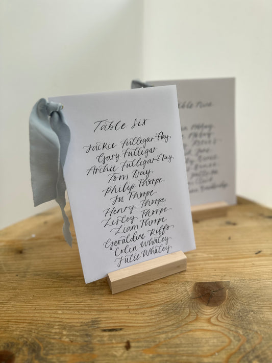 Ribbon Calligraphy Wedding A5 Table Plan Card | White Card Hand Written Calligraphy Table Plan Card | Mirror Table Plan Cards | DIY Table Plan Card