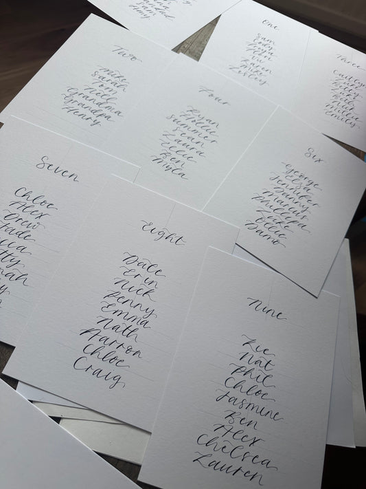 Calligraphy Wedding A5 Table Plan Card | White OR Colour Card Hand Written Calligraphy Table Plan Card | Mirror Table Plan Cards | DIY Table Plan Card