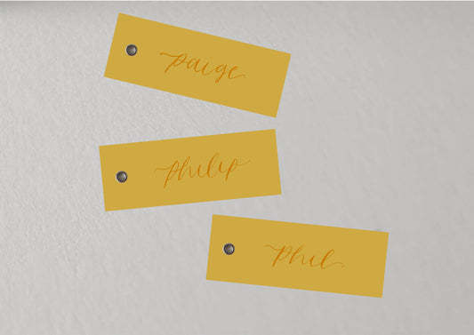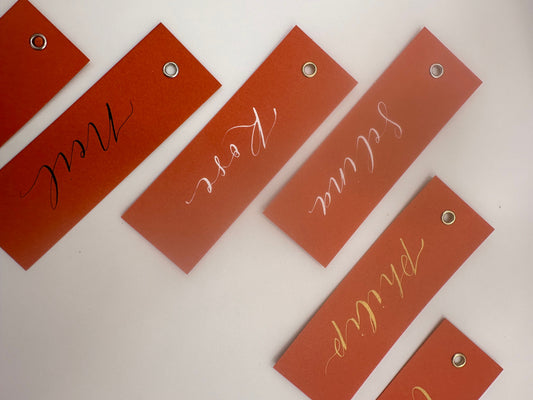 OCHRE Orange Calligraphy Place Name Card | Calligraphy Wedding Place Name Card | Flat Place Card