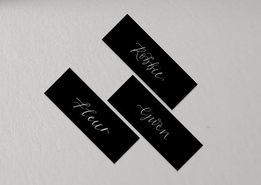 BLACK Calligraphy Place Name Card | Calligraphy Wedding Place Name Card | Flat Place Card