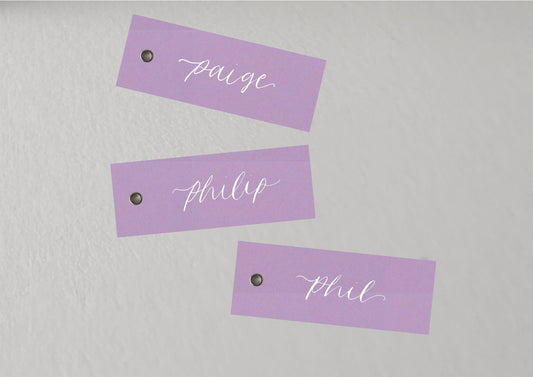 LAVENDER LILAC Calligraphy Place Name Card | Calligraphy Wedding Place Name Card | Flat Place Card