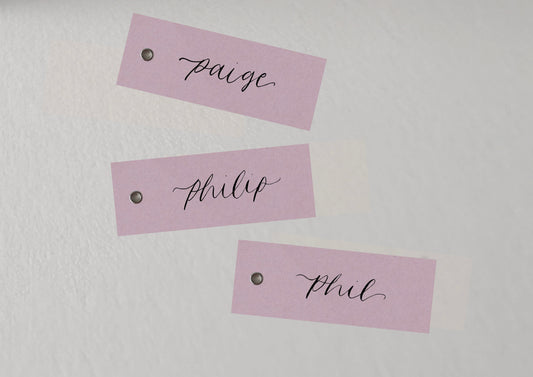 BLUSH Pink Calligraphy Place Name Card | Calligraphy Wedding Place Name Card | Flat Place Card