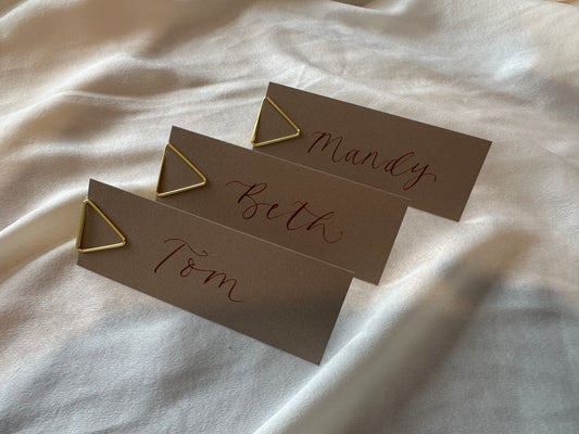MOCHA BROWN Calligraphy Place Name Card | Calligraphy Wedding Place Name Card | Flat Place Card