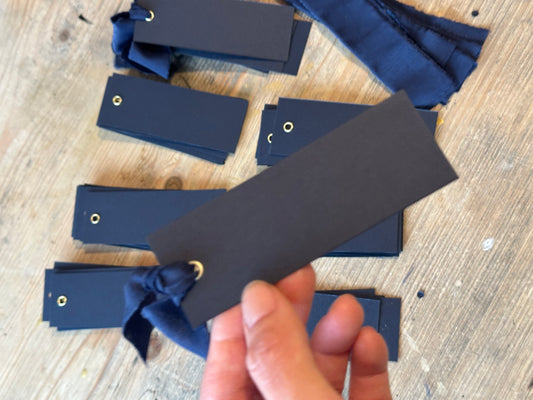 25 BLANK Navy Blue Ribbon Place Card with Eyelet | DIY Wedding Dinner Party Place Card, Write Your Own Place Setting