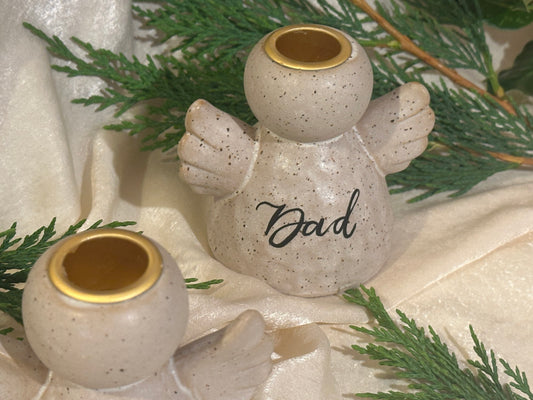 Personalised Angel Candle Stick Holder: Earthware Ceramic Remembrance Angel [Christmas Bereavement Parent Baby Loss]