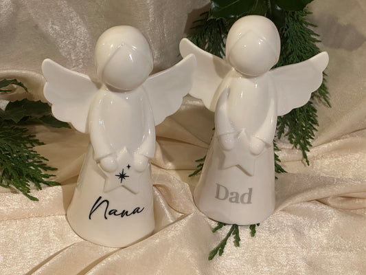 Personalised Angel Memorial Ornament: Freestanding White Glazed Ceramic Remembrance Angel [Christmas Bereavement Parent Baby Loss]