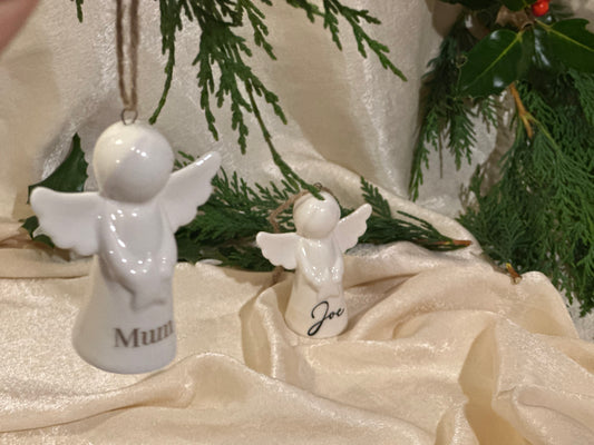 Personalised Angel Tree Decoration: White Glazed Ceramic Remembrance Angel Hanging Ornament [Christmas Bereavement Parent Baby Loss]