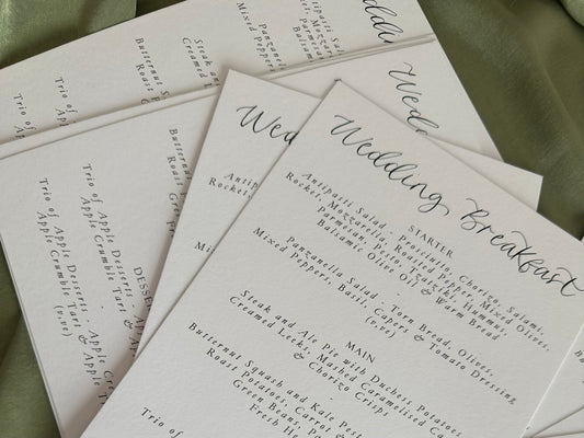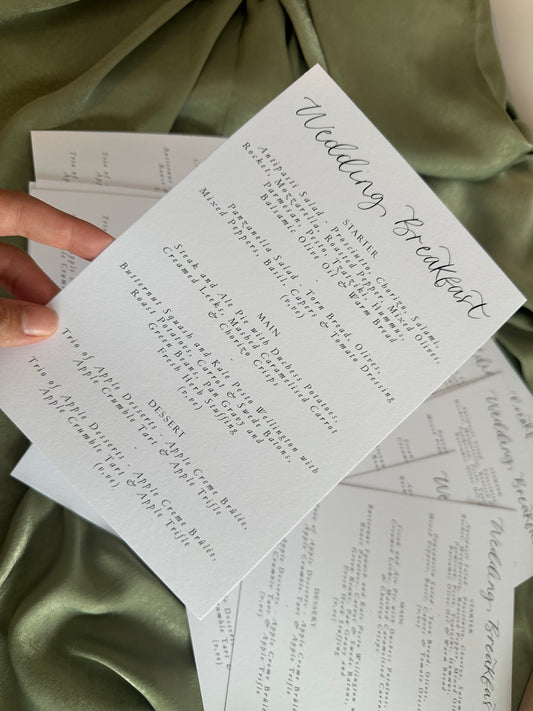 Calligraphy Title Printed Menu | Custom Printed Calligraphy Wedding Menu Card | A5 Menu Sign