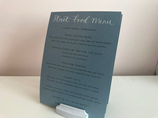 DUSKY BLUE Calligraphy Title Printed Menu | Custom Printed Calligraphy Wedding Menu Card | A5 Menu Sign
