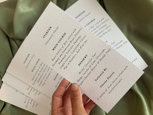 Printed Skinny Menu Card | Custom Printed Calligraphy Wedding Menu Skinny Card | Personalised Wedding Menu Card