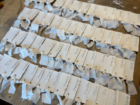 - Handwritten calligraphy place cards