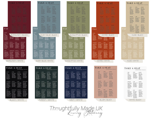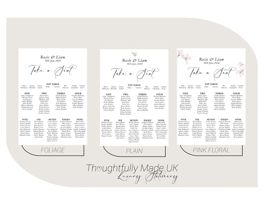 Wedding Table Plan | Printed Seating Chart | A1 A2 A3 Personalised Wedding Seat Sign