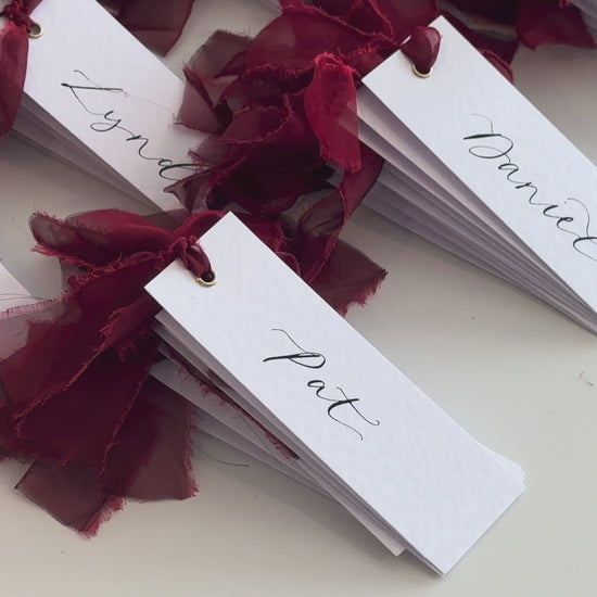 * Wedding Place Cards, Baby Shower Place Cards, Handwritten Place Names, Luxury Wedding Place Cards, wine Ribbon, Sand Ribbon, Table Names, burgundy Ribbon, winter Place Card *