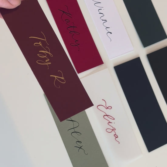 Add timeless elegance to your festive celebrations with our handwritten calligraphy place cards, crafted with care to make your guests feel truly special. Available in a wide choice of 8 card colours and 6 ink colours, these flat cards are personalised with each guest’s name in beautiful modern calligraphy.